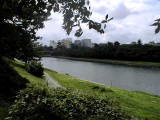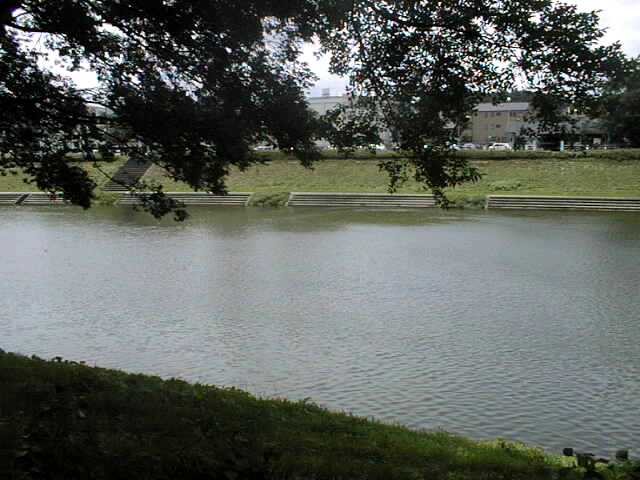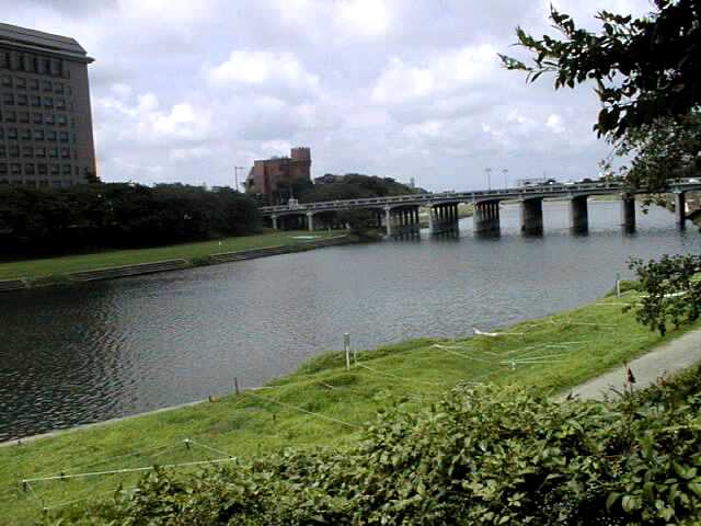 川をきれいにするためにこの付近では何カ所か川の中に噴水の設備があります。
