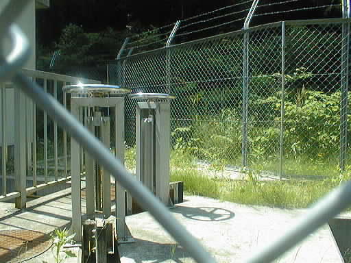 四ツ松配水場です。浄水場から地域で一番高いこの場所へポンプで水がくみ上げられてきます。ここから、水は高いところから低いところへ移動する性質を利用して、各家庭へ送られます。