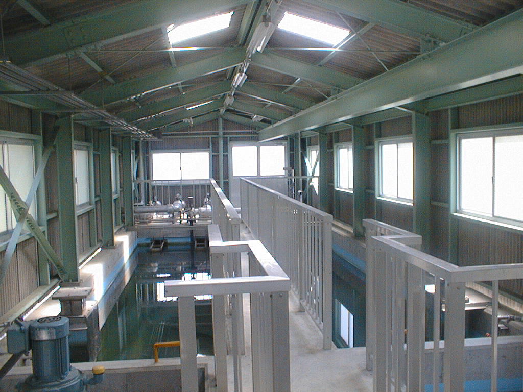 浄水場の中です。薬品でゴミを取り除いて、うわずみだけをとっていきます。
