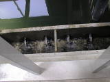 ポンプ室の中側です。川掃除用の一輪車、パイプには凍結防止用のものがまいてあります。
