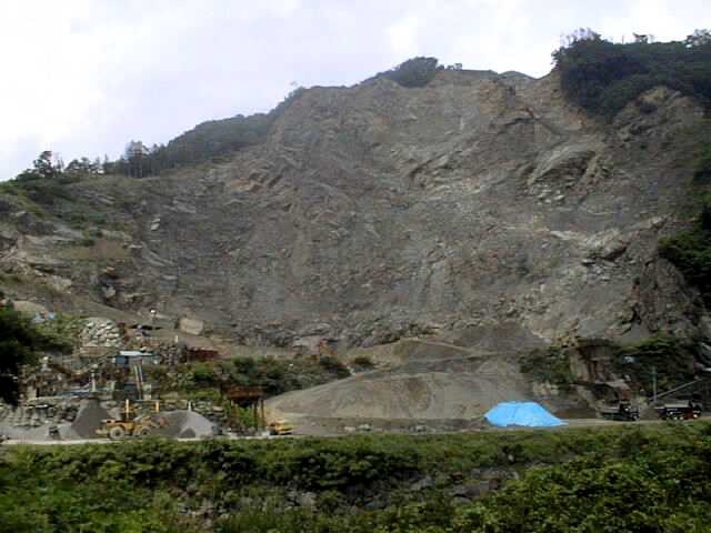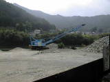 流れている豊川の横で岩石の採取現場もありました。
