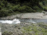 至る所に水力発電所があります。水力発電所の手前では水量が少なく、岩が多く見られます。
