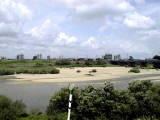 川の流れがゆるやかで、砂がたくさんつもっています。