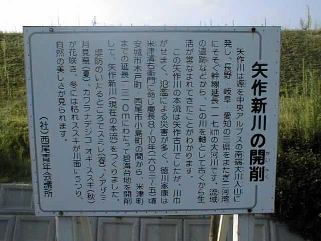 昔は矢作川の本流でした。よく氾濫(はんらん)したため、現在の矢作新川が作られました。